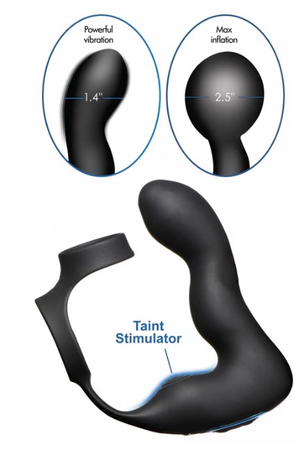 Start by pairing the remote and the toy. After they’ve paired, grab your favorite compatible lubricant. Lube up your shaft to slip on the cock and ball rings, orienting the plug so it’s the closest to your booty. Then, liberally lube up your hole and the shaft of the toy before starting to slip in the toy, massaging your hole as you bring it inside. Turn on the vibration to help relax the muscles and relieve tightness. Once inside, use the remote to begin inflating the toy to your desired fullness, then start playing with vibration settings! You can enjoy the toy alone as you stroke your shaft, or have your partner ride you as you get your backdoor filled and your prostate stimulated! After playtime is over, wash the toy well with warm water and soap, then use a toy cleaner and spray it before wiping it dry. Store in a cool, dry place.